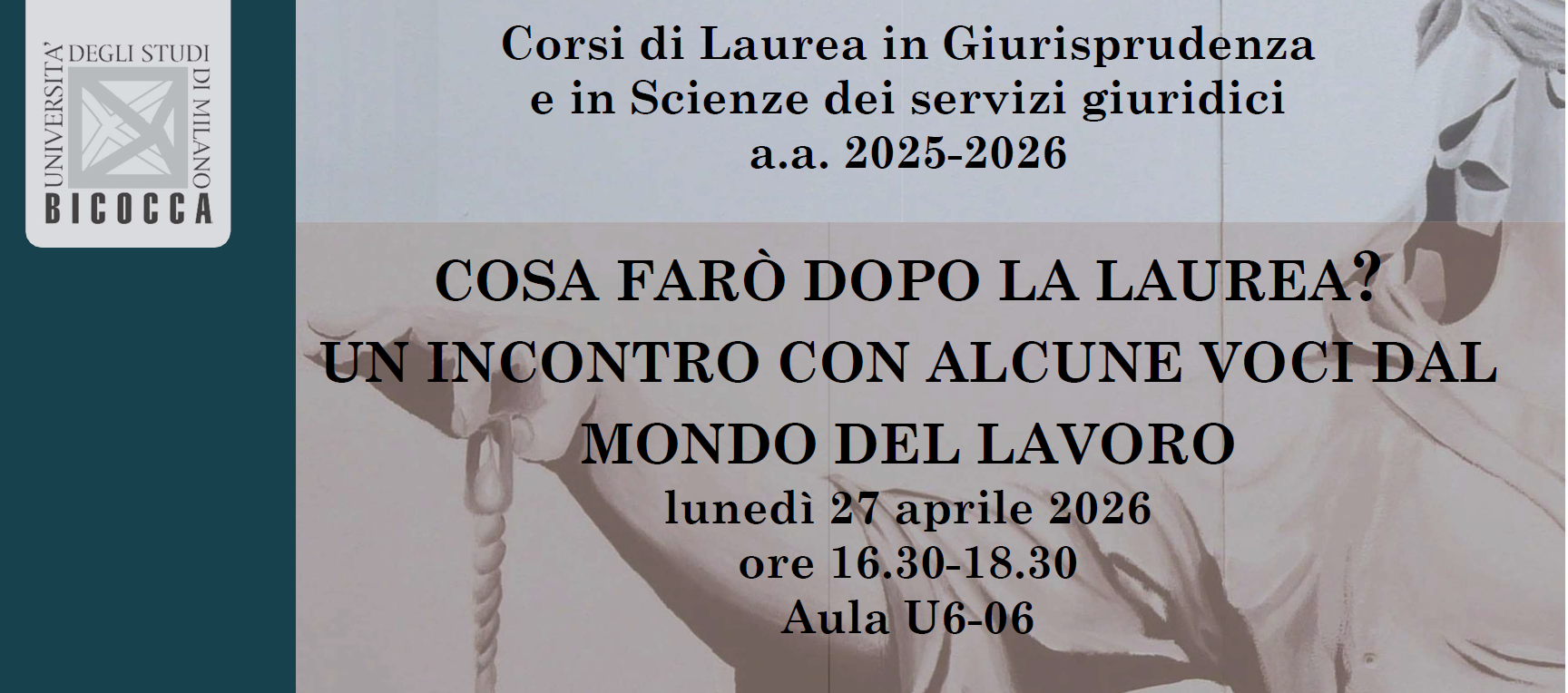 Per orientarsi nella scelta della propria professione futura il Dipartimento ha organizzato un incontro in cui porteranno la loro testimonianza alcune voci del mondo del lavoro giuridico.